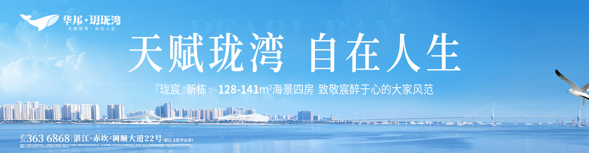 华邦·玥珑湾位于湛江一湾两岸的“皇冠区”调顺岛,总占地约700亩,总建面约160万平方米,紧邻湛江文化中心,拥约720米海岸线;配建九年一贯制公立学校——湛江市第二十五中学(湛江第一中学玥珑湾学校)及2所幼儿园。项目秉承“天赋珑湾 自在人生”的核心理念,以“滨海人居 养心之邸”为定位,聚焦文化、教育、康养的融合发展,打造全龄自在滨海学府大城。